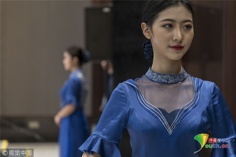 高顏值禮儀志愿者備戰(zhàn)第五屆世界互聯(lián)網(wǎng)大會