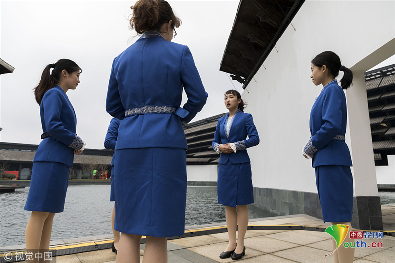 2018年11月5日,浙江嘉興,大會(huì)志愿者“小梧桐”爭(zhēng)分奪秒,在烏鎮(zhèn)展開緊張的實(shí)戰(zhàn)培訓(xùn)。阿凡提達(dá)/視覺中國