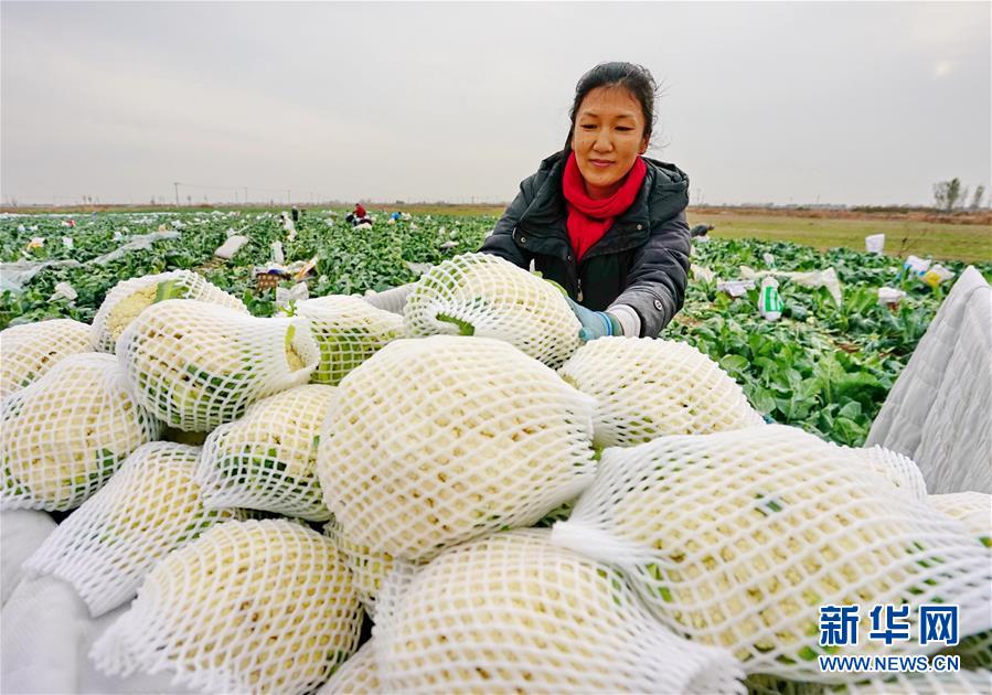 11月5日,唐山海港經(jīng)濟(jì)開(kāi)發(fā)區(qū)王灘鎮(zhèn)東高各莊村的菜農(nóng)將收獲的菜花裝車(chē)。 新華社記者 楊世堯 攝