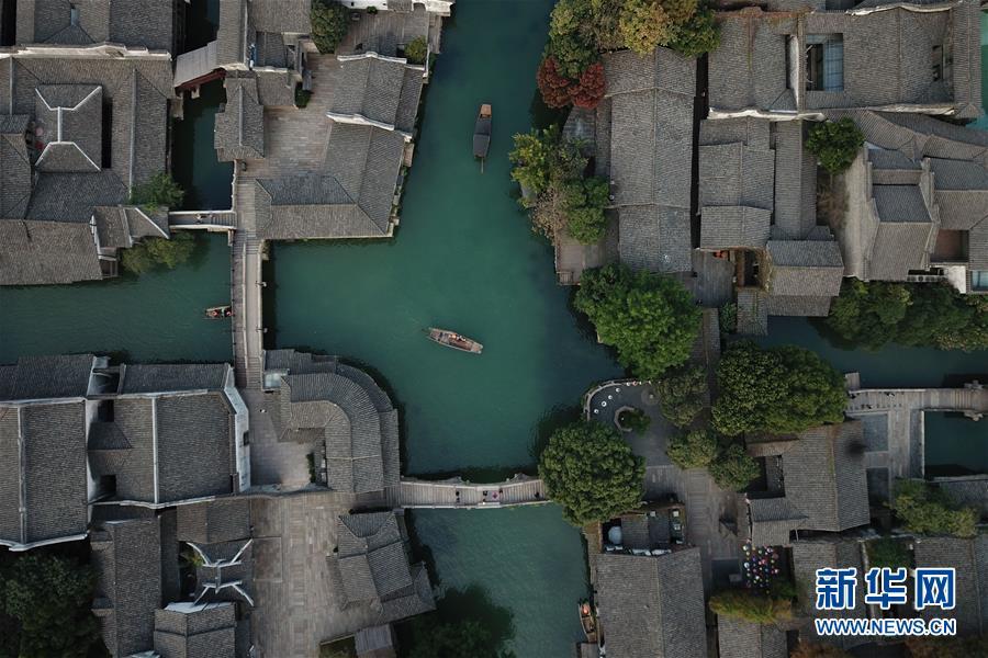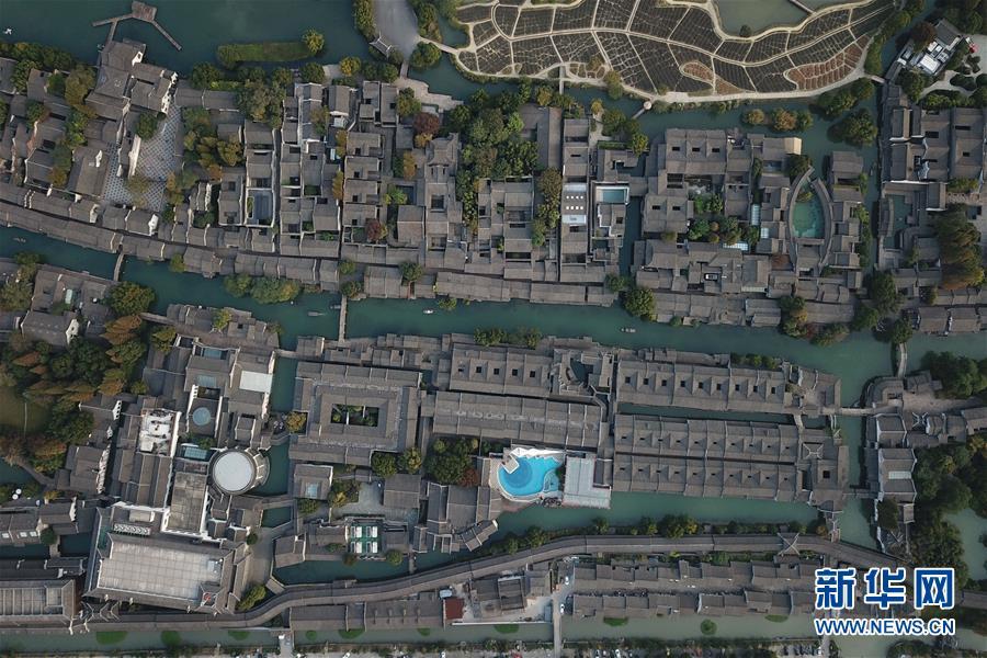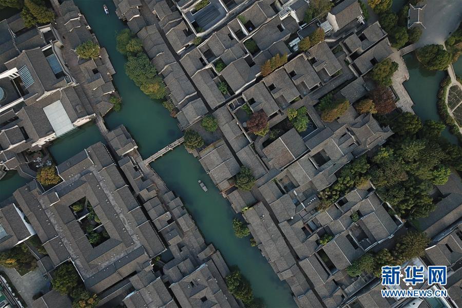 這是10月31日無人機(jī)拍攝的烏鎮(zhèn)西柵景區(qū)。 新華社記者黃宗治攝