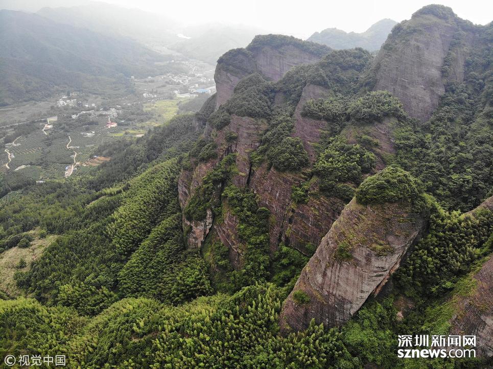 航拍位于贛粵兩省交界處的江西南武當(dāng)山。 南武當(dāng)山擁有99座千姿百態(tài)的巍峨石峰,丹霞地質(zhì)風(fēng)貌突出,連綿十里,被稱(chēng)為“武當(dāng)十里畫(huà)廊”。