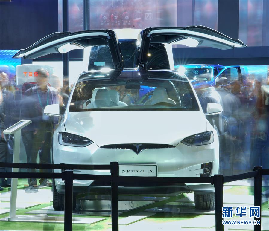 11月7日,觀眾在特斯拉展位參觀MODEL X汽車(chē)。