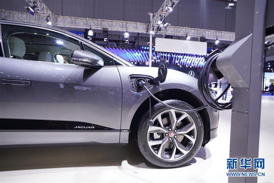 這是11月5日在汽車(chē)展區(qū)拍攝的捷豹純電動(dòng)I-PACE汽車(chē)。新華社記者 孟鼎博 攝