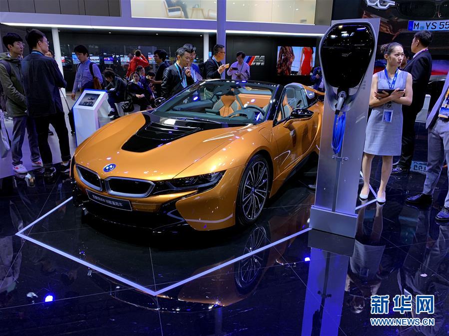 這是11月7日在汽車展區(qū)拍攝的寶馬i8混合動力跑車。新華社記者 牛曉雷 攝