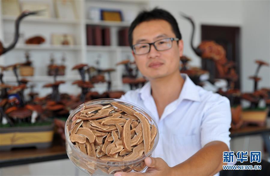 9月4日,韓子南在展示靈芝切片產(chǎn)品。