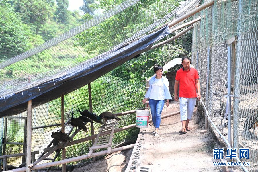 5月16日,在重慶市銅梁區(qū)永嘉鎮(zhèn)高龍村,閻仁兵(右)和妻子張榮蘋在養(yǎng)殖場內(nèi)巡視藍(lán)孔雀生長情況。 2010年,在外從事過家電、服裝、汽車配件等生意的閻仁兵、張榮蘋夫婦回到重慶市銅梁區(qū)永嘉鎮(zhèn)高龍村老家創(chuàng)業(yè)。經(jīng)過認(rèn)真的市場調(diào)研和學(xué)習(xí),他們開始從事藍(lán)孔雀養(yǎng)殖,并不斷提升養(yǎng)殖技術(shù)、擴(kuò)大養(yǎng)殖規(guī)模、拓展藍(lán)孔雀產(chǎn)業(yè)鏈。 通過不懈努力,他們養(yǎng)殖的藍(lán)孔雀數(shù)量已達(dá)到3000多只,除了銷售藍(lán)孔雀及其種苗外,還進(jìn)行了孔雀蛋、孔雀標(biāo)本、孔雀羽毛服裝、孔雀羽毛飾品等的生產(chǎn)和銷售。2017年,夫妻倆通過藍(lán)孔雀產(chǎn)業(yè),獲得了500多萬元的營業(yè)收入。 目前,夫妻倆正依托藍(lán)孔雀養(yǎng)殖基地及周邊優(yōu)美的自然風(fēng)光,打造“孔雀休閑山莊”,將藍(lán)孔雀產(chǎn)業(yè)和鄉(xiāng)村旅游結(jié)合起來,進(jìn)一步提高經(jīng)濟(jì)效益?!俺俗约簰赍X,我們也希望能夠帶動父老鄉(xiāng)親一起致富奔小康?!遍惾时f。 新華社記者 王全超 攝