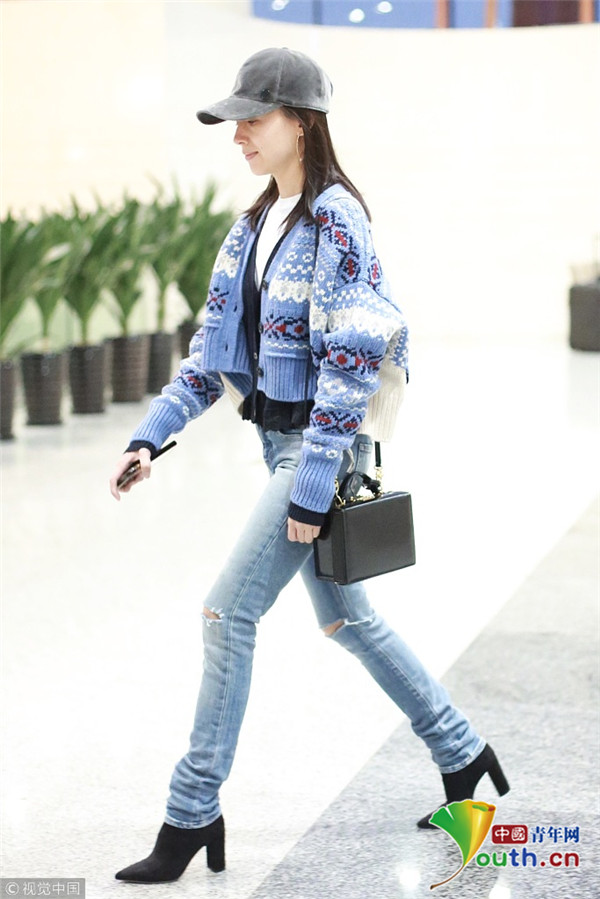 董潔素面朝天現(xiàn)機(jī)場(chǎng)