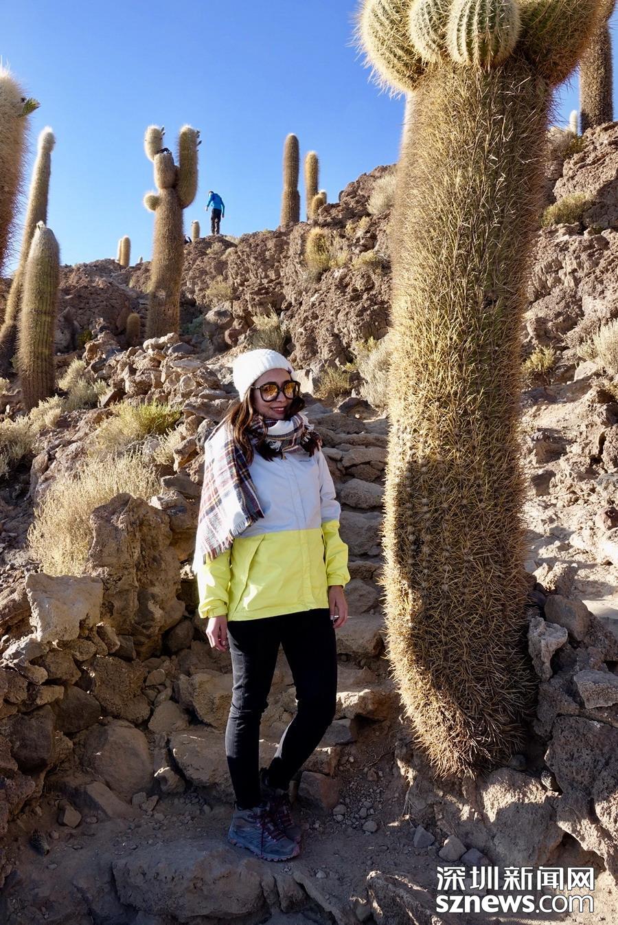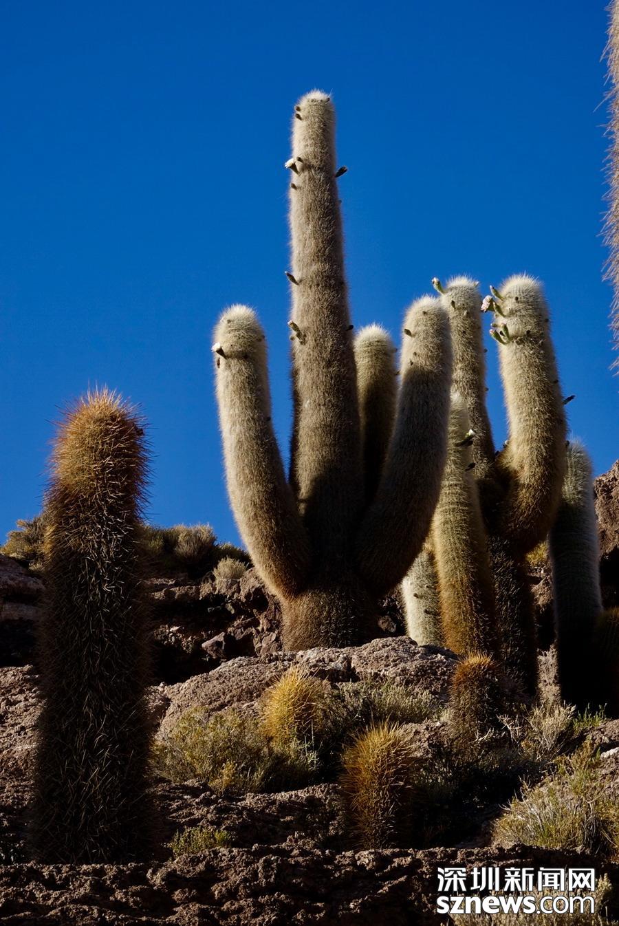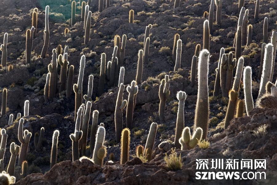 深圳新聞網(wǎng)訊 烏尤尼鹽沼中,有一個孤立的小山頭,猶如瀚海中的小島。島上長滿巨大的仙人柱,據(jù)說有的已經(jīng)生長了上千年。這種形狀各異、耐鹽堿、耐干旱的熱帶植物豐富了鹽沼的風(fēng)光,構(gòu)成絕無僅有的世界奇觀。 李仁奇 攝