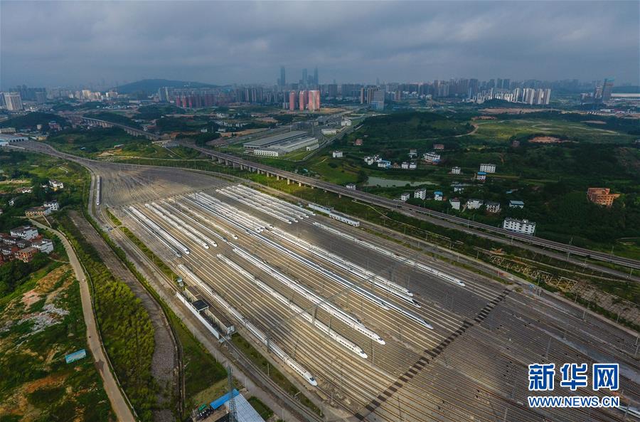 這是廣西南寧動(dòng)車所內(nèi)準(zhǔn)備發(fā)往各地的動(dòng)車組列車(7月1日無(wú)人機(jī)拍攝)。 近年來(lái),廣西在海、陸、空立體式推進(jìn)與東盟國(guó)家的互聯(lián)互通,扎實(shí)推進(jìn)“高速縣縣通、高鐵市市通、民航片片通、內(nèi)河條條通”建設(shè)。目前高鐵運(yùn)營(yíng)里程1751公里,高速公路總里程突破5000公里,沿海和內(nèi)河港口年吞吐能力分別達(dá)2.5億噸和1.1億噸,機(jī)場(chǎng)旅客年吞吐能力近3000萬(wàn)人次,內(nèi)外交通便捷度全面提升。 新華社記者 黃孝邦 攝