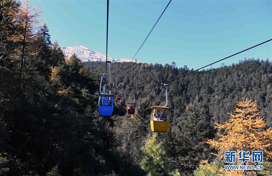 11月10日,游客乘坐纜車(chē)觀賞麗江玉龍雪山風(fēng)光。 新華社記者楊宗友攝