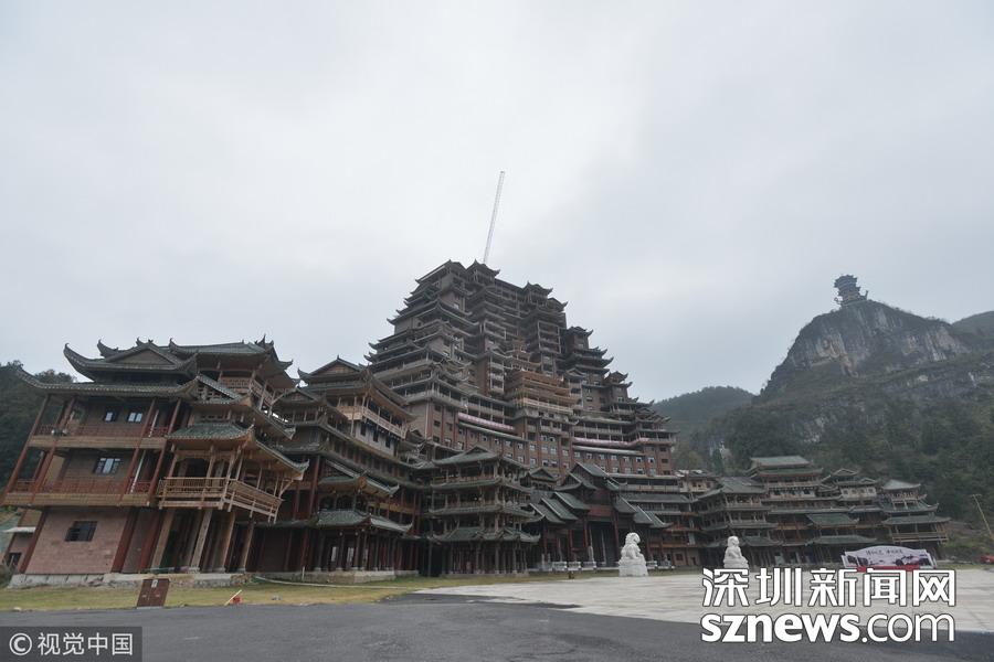 深圳新網(wǎng)網(wǎng)訊 始建于2016年9月的貴州省獨山縣水司樓已進入工程收尾階段。雄偉壯麗造型別致的水司樓,是集會展博覽、酒店住宿、游覽觀光等于一體的大型綜合體。除具有水族特色元素外,該建筑還融合了苗族、布依族特色,是獨山縣凈心谷景區(qū)最具標志性的宏大建筑。該樓占地面積5900平方米,總建筑面積60000平方米,樓高99.9米,共24層,是世界上最高大最大最壯觀的水族建筑,被稱為“天下第一水司樓”。 水司樓是按照水族依山畔水而居的傳統(tǒng)習俗和建筑特征修建,是水族人民的文化符號和智慧的象征,背靠凈心河谷山脊,以弧形的平面布局模式,如同張開懷抱的巨人,緊擁美麗的姻脂河灣,設計巧妙,工藝精巧。