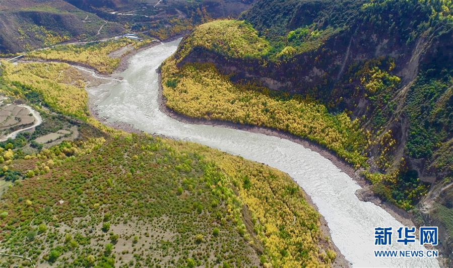 這是10月21日在西藏米林縣派鎮(zhèn)達(dá)林村拍攝的雅魯藏布江(無人機(jī)拍攝)。
