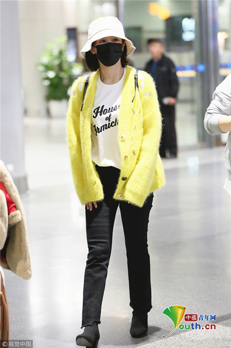 日前,楊紫現(xiàn)身長沙黃花機場,她頭戴漁夫帽的她口罩遮面,身著鮮黃針織衫相當(dāng)搶眼,一路獲粉絲跟拍。