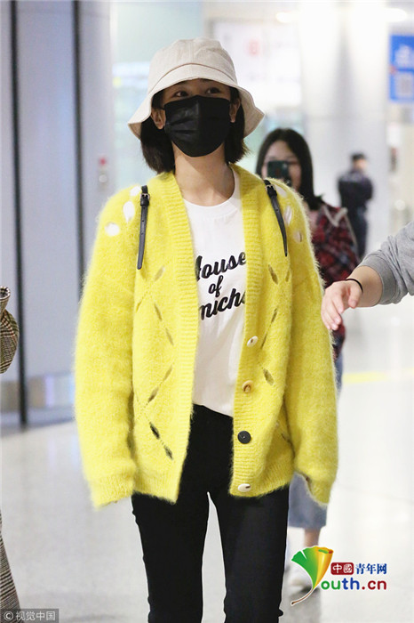 日前,楊紫現(xiàn)身長沙黃花機場,她頭戴漁夫帽的她口罩遮面,身著鮮黃針織衫相當(dāng)搶眼,一路獲粉絲跟拍。
