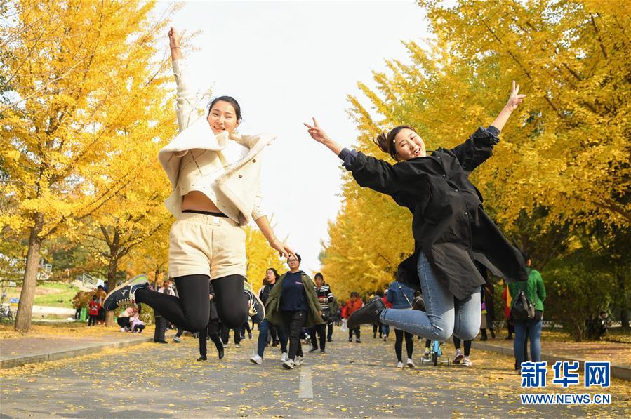近日,沈陽(yáng)農(nóng)業(yè)大學(xué)內(nèi)的銀杏樹進(jìn)入最佳觀賞期,長(zhǎng)達(dá)一千余米的金色“銀杏路”吸引了許多市民前去游覽,拍照。 新華社記者龍雷攝