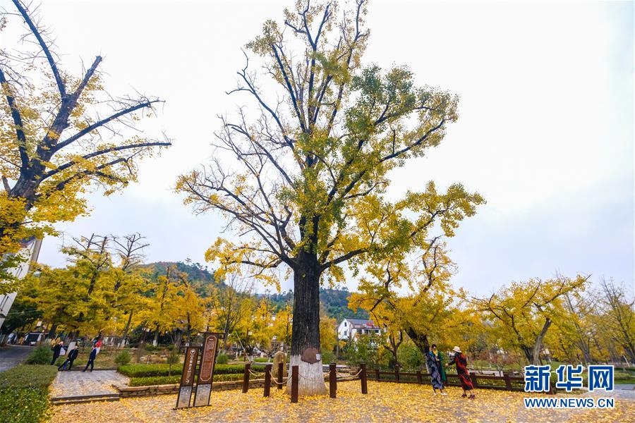 11月1日,游客在河南省嵩縣白河鄉(xiāng)下寺村古銀杏樹下拍照。 深秋時(shí)節(jié),河南省嵩縣白河鄉(xiāng)下寺村的古銀杏林為小山村披上了“金甲”。漫天黃葉,遍地金色,一幢幢民居掩映在色彩斑斕的世界里,美不勝收,吸引了眾多游客賞景拍照。 新華社記者 李安 攝