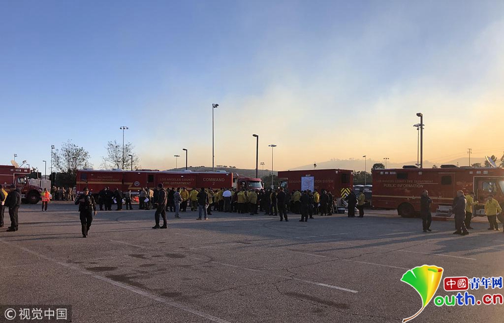 圖為文圖拉郡火場附近多輛消防車集結。
