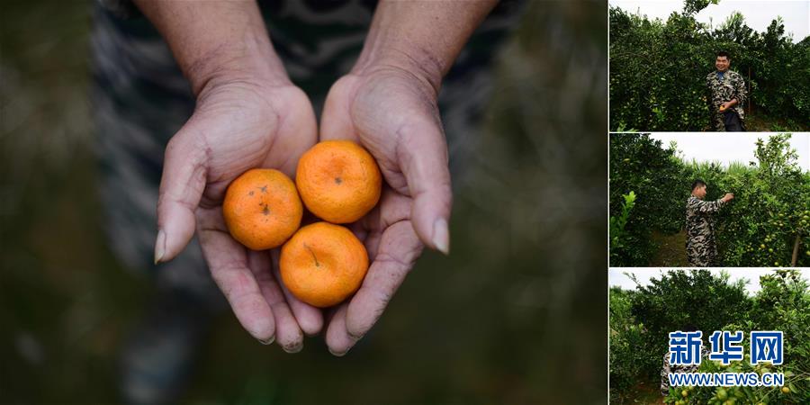 拼版照片:左圖為在永樂鎮(zhèn)四莫村,莫文振在果園里手捧剛剛摘下的桔子;右圖為莫文振在果園里勞作(照片均攝于11月19日)。莫文振從2012開始種植柑桔和甘蔗,2016年實(shí)現(xiàn)脫貧。 廣西融水苗族自治縣是國家扶貧工作重點(diǎn)縣,全縣“九山半水半分田”,生活生產(chǎn)環(huán)境較為惡劣,脫貧攻堅(jiān)任務(wù)艱巨,目前還有7.68萬貧困人口。面對經(jīng)濟(jì)發(fā)展落后、貧困面廣且程度深的現(xiàn)狀,當(dāng)?shù)匕衙撠毠?jiān)與創(chuàng)新產(chǎn)業(yè)扶持相結(jié)合,依托生態(tài)資源優(yōu)勢,實(shí)施“特色產(chǎn)業(yè)富民行動(dòng)”,通過發(fā)展特色民族旅游、林下經(jīng)濟(jì)和特色養(yǎng)殖業(yè)等扶貧產(chǎn)業(yè),帶動(dòng)貧困群眾依靠勤勞的雙手,拔窮根摘窮帽,實(shí)現(xiàn)脫貧致富。據(jù)了解,目前全縣貧困戶參與特色產(chǎn)業(yè)發(fā)展的有2.9萬戶,扶貧產(chǎn)業(yè)覆蓋率達(dá)95%。 新華社記者 黃孝邦 攝