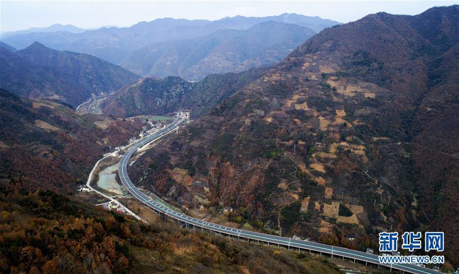 11月20日拍攝的水陽高速公路黃家灣特大橋路段(無人機拍攝)。 近日,記者從陜西省交通建設(shè)集團公司了解到,陜西柞水至山陽高速公路已全線貫通即將通車。據(jù)介紹,(柞)水(山)陽高速公路全長78.8公里,開通后將實現(xiàn)包茂高速、福銀高速在陜南商洛地區(qū)的連接,開辟出秦嶺南麓的一條橫向高速大通道,對完善陜西高速公路路網(wǎng)結(jié)構(gòu)、促進陜南區(qū)域經(jīng)濟發(fā)展、加快山區(qū)群眾脫貧致富具有重要意義。 新華社記者劉瀟攝