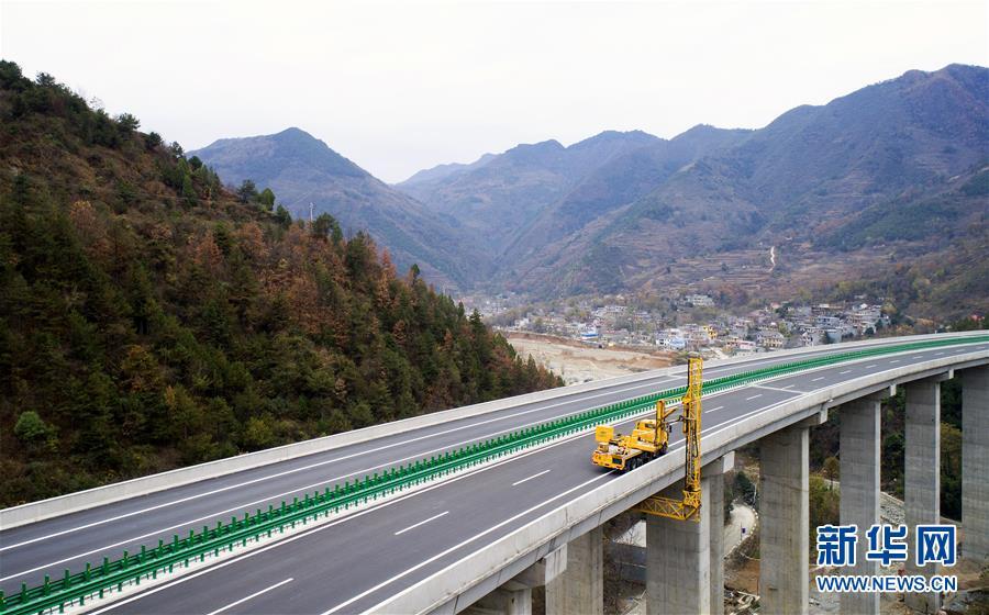 11月20日,在水陽(yáng)高速公路左家灣特大橋上,橋梁檢測(cè)車(chē)在進(jìn)行通車(chē)前的檢測(cè)作業(yè)(無(wú)人機(jī)拍攝)。 近日,記者從陜西省交通建設(shè)集團(tuán)公司了解到,陜西柞水至山陽(yáng)高速公路已全線(xiàn)貫通即將通車(chē)。據(jù)介紹,(柞)水(山)陽(yáng)高速公路全長(zhǎng)78.8公里,開(kāi)通后將實(shí)現(xiàn)包茂高速、福銀高速在陜南商洛地區(qū)的連接,開(kāi)辟出秦嶺南麓的一條橫向高速大通道,對(duì)完善陜西高速公路路網(wǎng)結(jié)構(gòu)、促進(jìn)陜南區(qū)域經(jīng)濟(jì)發(fā)展、加快山區(qū)群眾脫貧致富具有重要意義。 新華社記者劉瀟攝