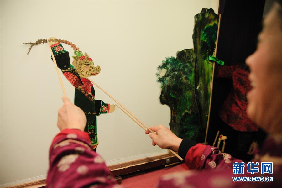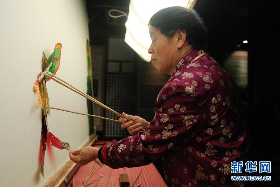 11月20日,在浙江海寧市南關廂歷史街區(qū),張坤榮在表演皮影戲。新華社記者黃宗治攝
