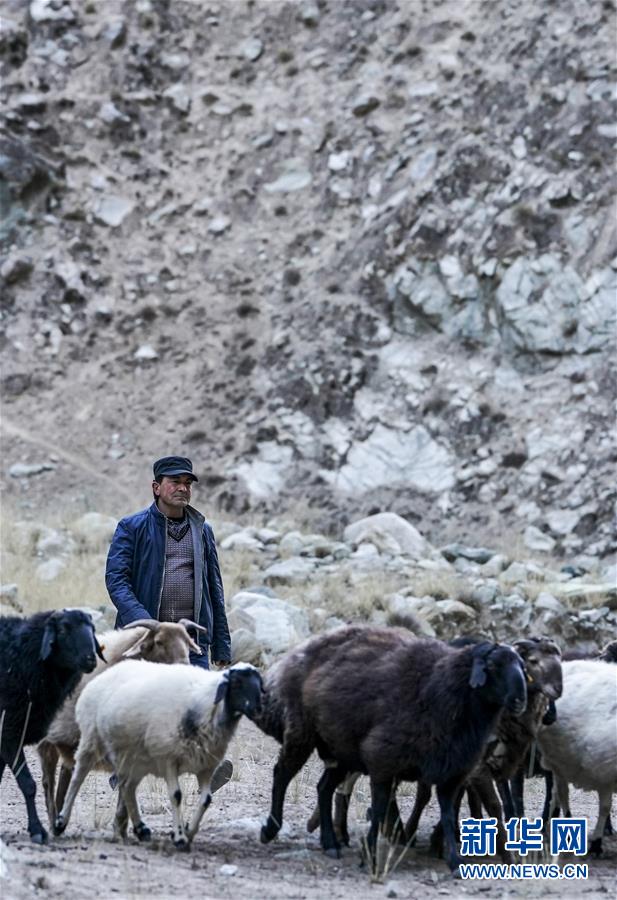 在塔什庫(kù)爾干塔吉克自治縣大同鄉(xiāng)阿克托尕欄桿村一組,都熱·加爾曼趕著羊群回家(11月16日攝)。新華社記者胡虎虎攝