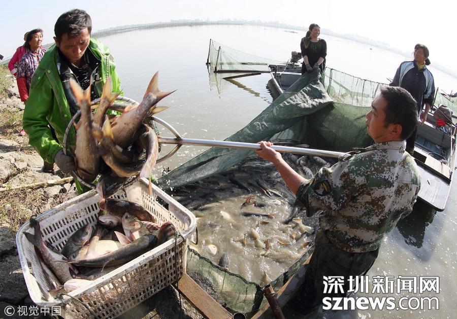 深圳新聞網(wǎng)訊  江蘇揚(yáng)州,邗江區(qū)公道鎮(zhèn)南湖村南湖水域,專業(yè)捕撈隊(duì)人員已集結(jié)到胡登強(qiáng)養(yǎng)殖戶家魚塘進(jìn)行捕撈作業(yè)。據(jù)捕撈隊(duì)員沈昌田介紹,近期隨氣溫轉(zhuǎn)冷,魚的銷量增加,水產(chǎn)養(yǎng)殖戶紛紛捕魚上市,為趕在上午10時(shí)將魚運(yùn)到水產(chǎn)批發(fā)市場(chǎng)銷售,專業(yè)捕撈隊(duì)員們天不亮就起床,下河塘布圍網(wǎng)、收網(wǎng)撈魚、過秤裝車。一周捕撈作業(yè)有三四次之多,一次捕撈多達(dá)上萬斤魚。公道鎮(zhèn)有水面灘涂6.5萬畝,是魚、蝦、蟹、等水產(chǎn)品養(yǎng)殖的理想場(chǎng)所。