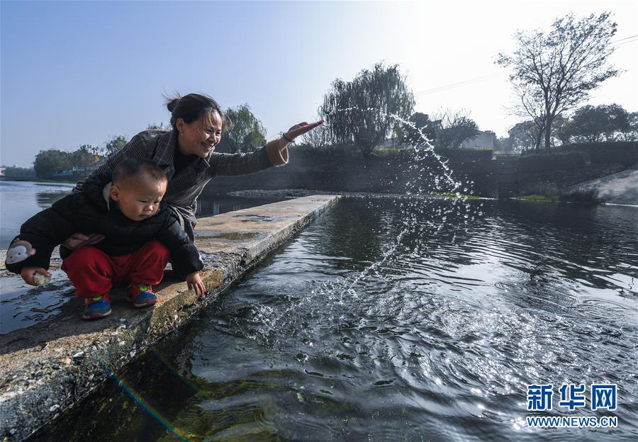 11月28日,月明村的村民在長(zhǎng)豐澗溪水邊嬉水。近年來(lái)通過(guò)實(shí)施河長(zhǎng)制和水環(huán)境整治,長(zhǎng)興縣夾浦鎮(zhèn)月明村對(duì)長(zhǎng)豐澗進(jìn)行了清淤,對(duì)河兩岸綠化進(jìn)行了補(bǔ)植,修筑堰壩、蓄水引魚,兩岸種植花草,開辟河灘公園,實(shí)現(xiàn)了長(zhǎng)豐澗景美、岸綠、水清、河暢的目標(biāo)。 新華社記者 徐昱 攝