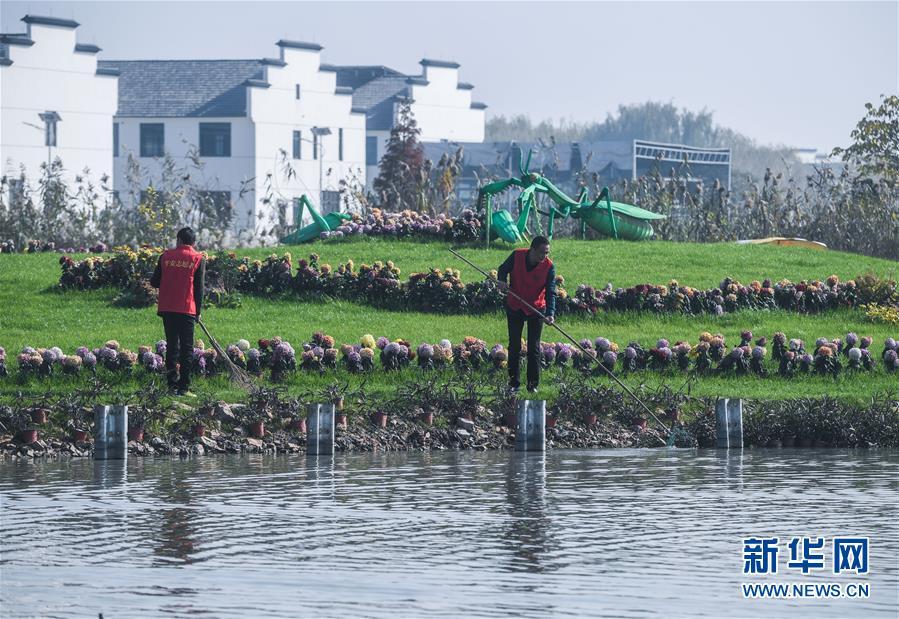 11月28日,林城鎮(zhèn)北湯村河長(zhǎng)黃雙喜(右)在施家邊河打撈水面漂浮物。近年來(lái),北湯村全面推進(jìn)“五水共治”,停止河道內(nèi)的水產(chǎn)養(yǎng)殖,并進(jìn)行河道清淤,整治周邊環(huán)境,另外還結(jié)合北湯生態(tài)園旅游項(xiàng)目,發(fā)展旅游經(jīng)濟(jì),打造水上娛樂(lè)設(shè)施?,F(xiàn)在北湯村施家邊河道水質(zhì)清澈,環(huán)境秀美,每年為北湯村吸引游客18萬(wàn)人次。 新華社記者 徐昱 攝