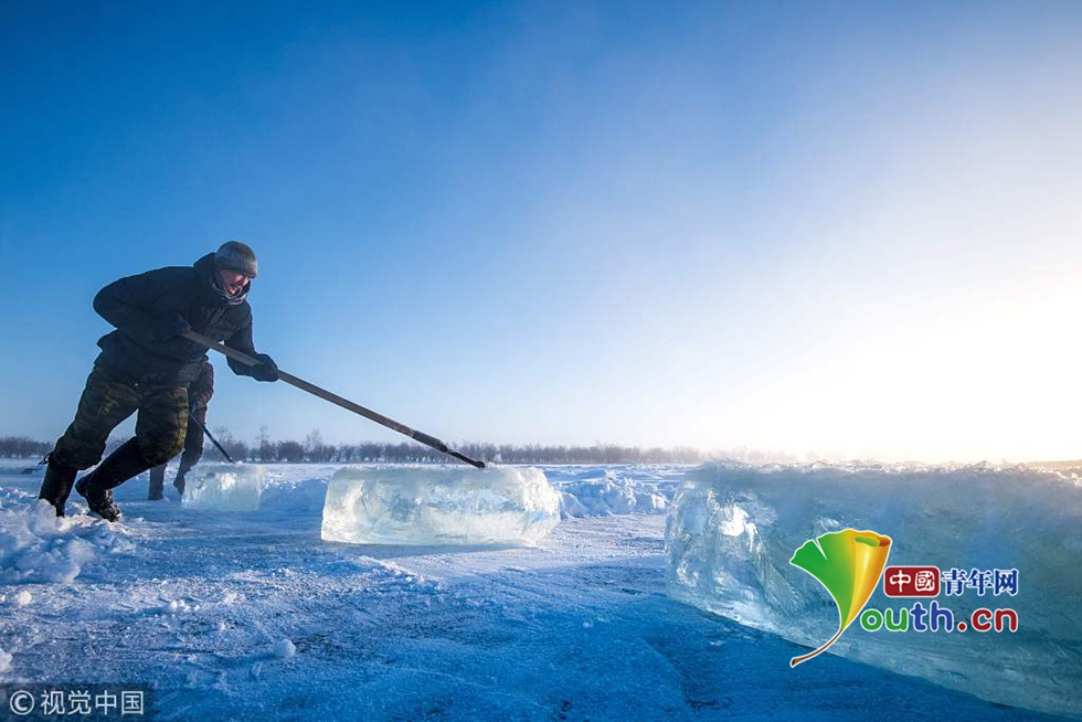 航拍中俄界湖興凱湖封凍 如同浪花被 ...