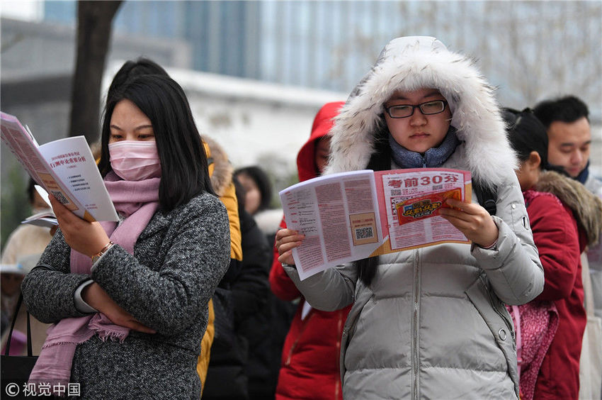 2018年12月2日,考生在南京林業(yè)大學(xué)考點(diǎn)進(jìn)場(chǎng)參加考試。蘇陽/視覺中國(guó)