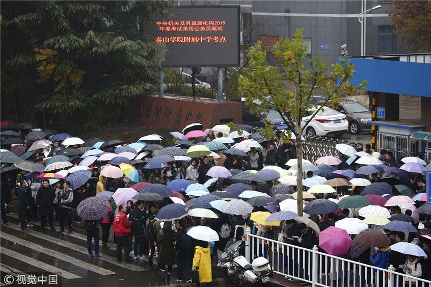 2018年12月2日9時(shí),山東泰安,2019年度國(guó)考公共科目筆試開考。雨中趕考的考生,成為一道靚麗的風(fēng)景線。無/視覺中國(guó)