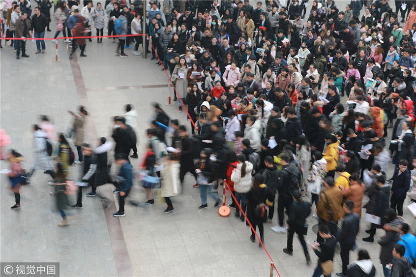 2018年12月2日,湖北武漢一公務(wù)員考點(diǎn),密密麻麻的考生進(jìn)向考場(chǎng)。當(dāng)日,2019年度中央機(jī)關(guān)及其直屬機(jī)構(gòu)公務(wù)員招考筆試開考。楚林/視覺中國(guó)
