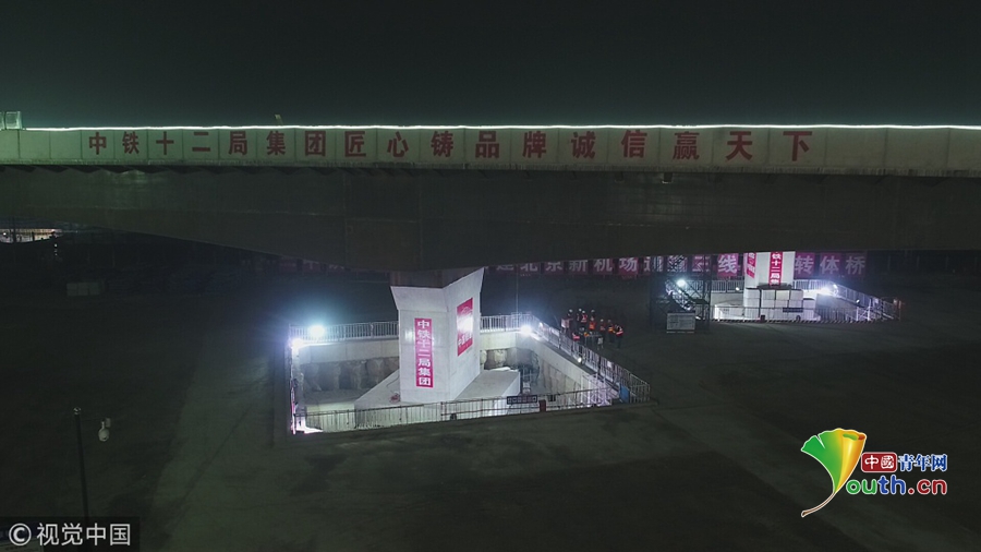 2018年12月1日,北京,大興國際機場高速公路重要節(jié)點工程“三線四橋”同步轉(zhuǎn)體工程順利完成。機場配套交通“咽喉要道”的打通,標志著大興國際機場高速公路全線主體基本建成,軌道交通新機場線地上段基本貫通。美立/視覺中國