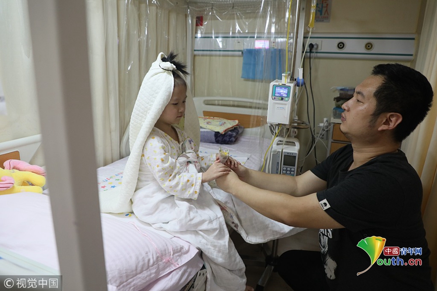 有人說,每個大病患兒都是折翼的天使。經(jīng)過兩年多的治療后,小婭馨變得越來越堅強懂事了,對自己的病情也有了基本清晰的認(rèn)知。11月16日,小婭馨接受化療時靜脈上被插上了長長的管子,疼的嚎啕大哭,爸爸袁東方摟著她痛哭流涕:“女兒不怕!打完針病就好了,你就能像正常人一樣上學(xué)、戀愛、結(jié)婚了!”。治療結(jié)束后,小婭馨天真無邪地說“爸爸,長大了才可以結(jié)婚,那需要好久,我害怕等不到那一天,要不現(xiàn)在咱們倆結(jié)一次婚吧!”。