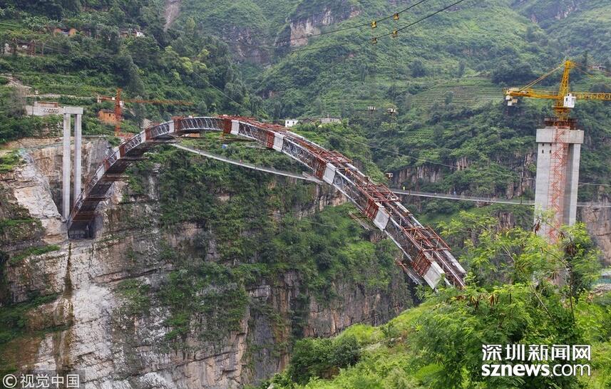 2018年5月30日,云南昭通,鸚哥大橋完成最后一段35米引橋現(xiàn)澆箱梁作業(yè),標(biāo)志著“鸚哥溜索改橋”主體工程完工,進(jìn)入最后階段的橋面鋪裝和防護(hù)欄施工,預(yù)計6月底建成通車。