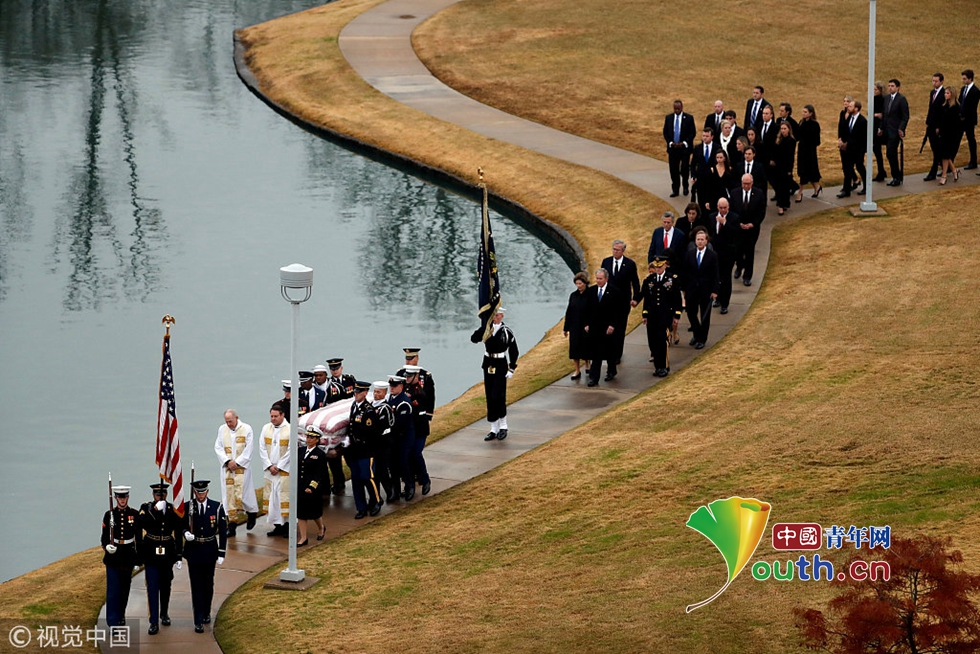 老布什靈柩下葬德州家族墓地 21架F18戰(zhàn)機編隊悼念
