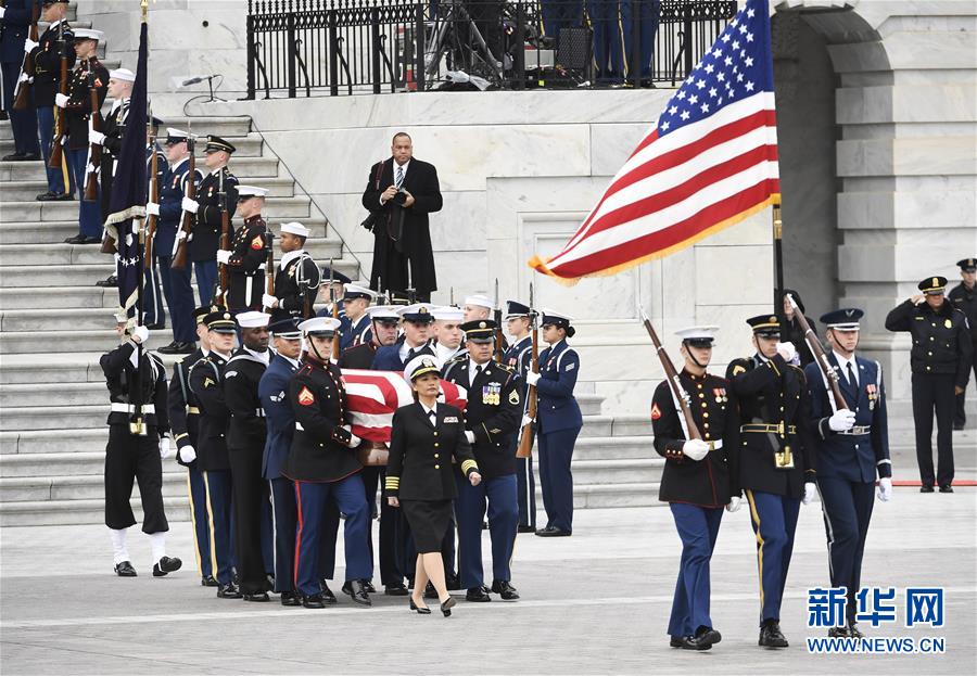 12月5日,在美國首都華盛頓,美國前總統(tǒng)喬治·赫伯特·沃克·布什的靈柩離開國會(huì)大廈。