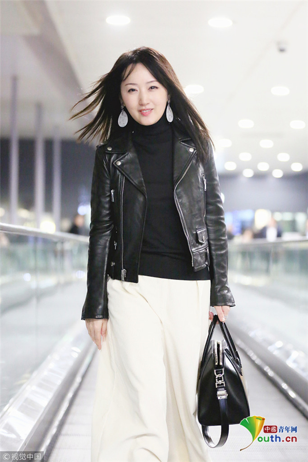 秦嵐潮味棉服亮相機(jī)場(chǎng) 口罩遮面露甜 ...