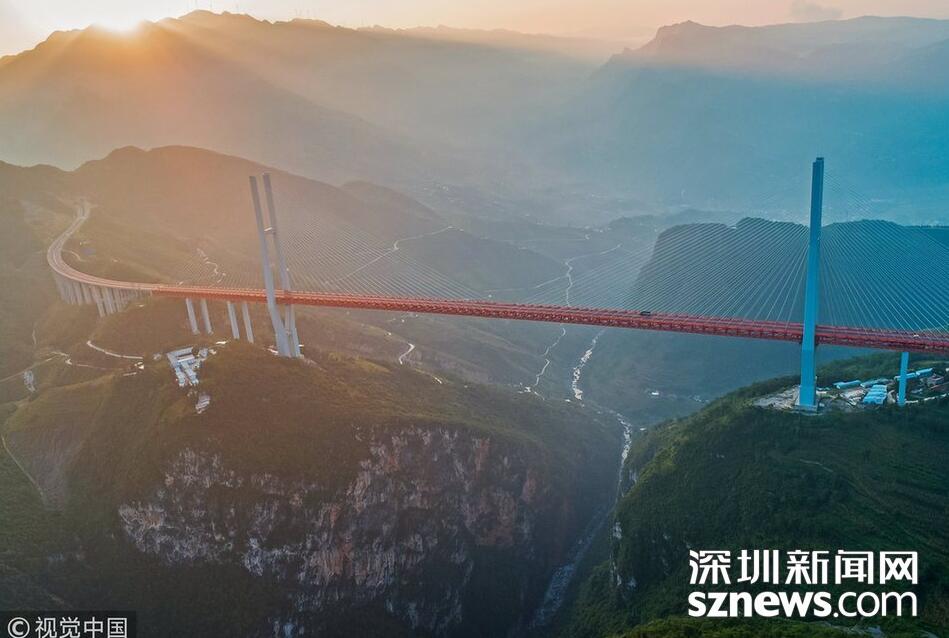 畢都高速公路北盤(pán)江大橋是杭瑞高速公路畢都段的控制性工程,位于貴州省和云南省交界處,由貴州省和云南省共建。該橋橋面至江面高差達(dá)565米,成為目前世界第一高橋。主橋?yàn)殇撹炝盒崩瓨?,主?20米,目前位居同類(lèi)型橋梁2016年12月29日正式通車(chē)。