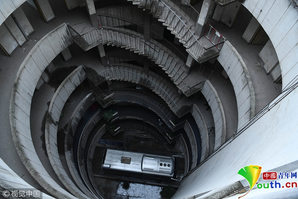 重慶洋人街景區(qū)內(nèi)的穿樓觀光索道吸引不少游客體驗(yàn)。據(jù)悉,跨度長(zhǎng)1000米的觀光索道將隨著洋人街的拆遷而搬離。中新社記者陳超 攝 2017年9月27日,重慶,南岸區(qū)某小區(qū)的“螺旋”停車場(chǎng),從公路到車庫(kù)要下5層樓,司機(jī)需要轉(zhuǎn)無(wú)數(shù)個(gè)360度圈。圖片來(lái)源:視覺(jué)中國(guó)