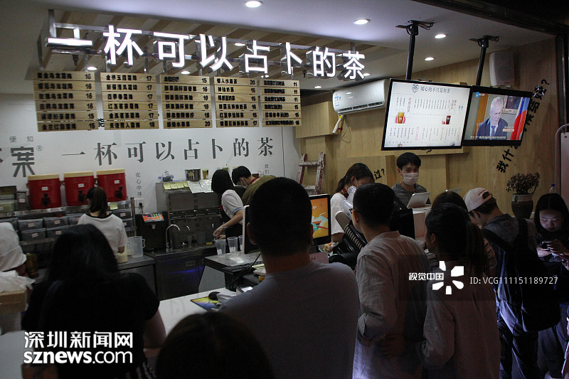 2018年4月21日,重慶,萬(wàn)達(dá)廣場(chǎng)附近有一家新開(kāi)業(yè)的網(wǎng)紅答案茶的冷飲店,這家答案茶冷飲店人氣異常火爆,門(mén)前已排起了兩條“長(zhǎng)龍”。 |