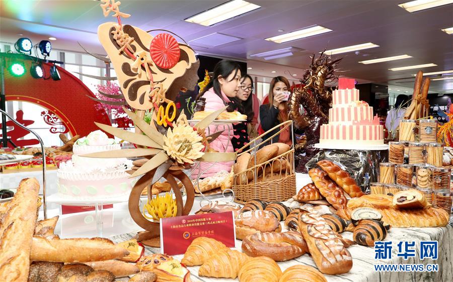 12月13日,參觀者在烘焙和糖藝成品展示現(xiàn)場參觀。 當(dāng)日,2018年中國技能大賽——上海市食品行業(yè)職業(yè)技能競賽(西式面點(diǎn)師項(xiàng)目)在上海環(huán)球港舉行?;顒臃譃楦傎惡驼故緝刹糠?,近400名選手參加競賽部分比拼,最終進(jìn)入決賽的25名選手的作品在現(xiàn)場進(jìn)行展示評比。 新華社記者 方喆 攝
