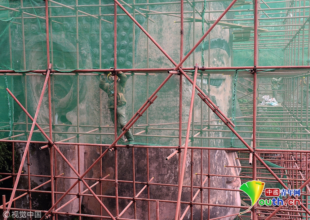樂山大佛本體已全遮蔽 胸腹開裂病害原因基本查明