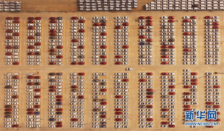2018年8月20日,重慶果園港內(nèi)停放著等待運(yùn)輸?shù)钠嚒?大地之色,俯仰之間;壯美山河,是我的祖國。2018年,新華社記者操縱無人機(jī)“飛閱”華夏大地,在最美的時節(jié),定格下她的色彩斑斕。 新華社記者 王全超 攝