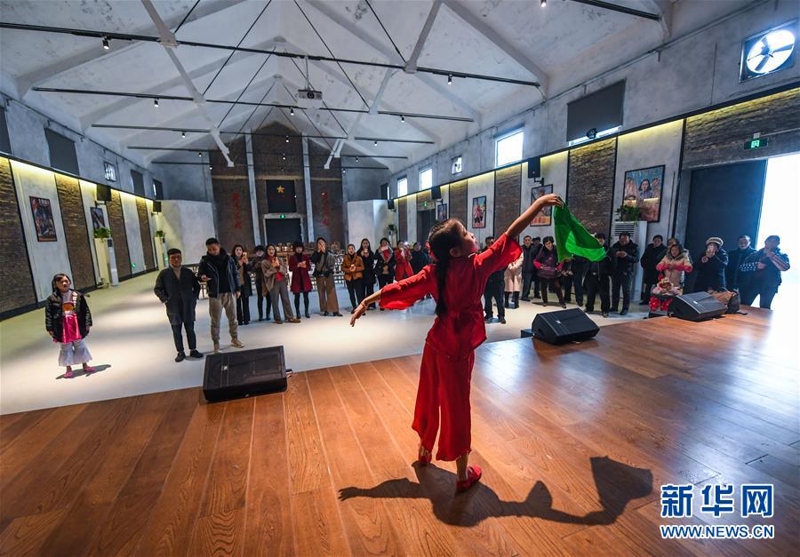 12月20日,學生在舊糧倉改建的鄉(xiāng)村電影院內(nèi)排練鄉(xiāng)村春晚的節(jié)目。 新華社記者 徐昱 攝