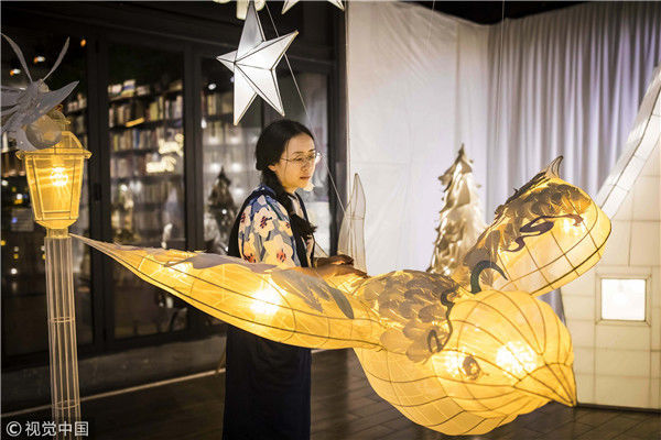2018年5月6日,廣州,在天河區(qū)一家大商場辦個展時,用紙片做成的北極熊、大松樹、火烈鳥、紙房子在光線的配合下美輪美奐,吸引了很多顧客駐足。“幾乎每個人一看到,都會走進那個夢幻的場景里,和這些紙雕一起合影。”圖片攝于2018年5月6日。