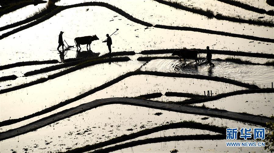 4月10日清晨,湖北省蘄春縣霧云山村的農(nóng)民在梯田勞作。 在即將過去的2018年,各地?cái)z影師用鏡頭記錄下四季中國。大江南北,一幅幅色彩斑斕的美麗畫卷徐徐展開。 新華社記者 程敏 攝