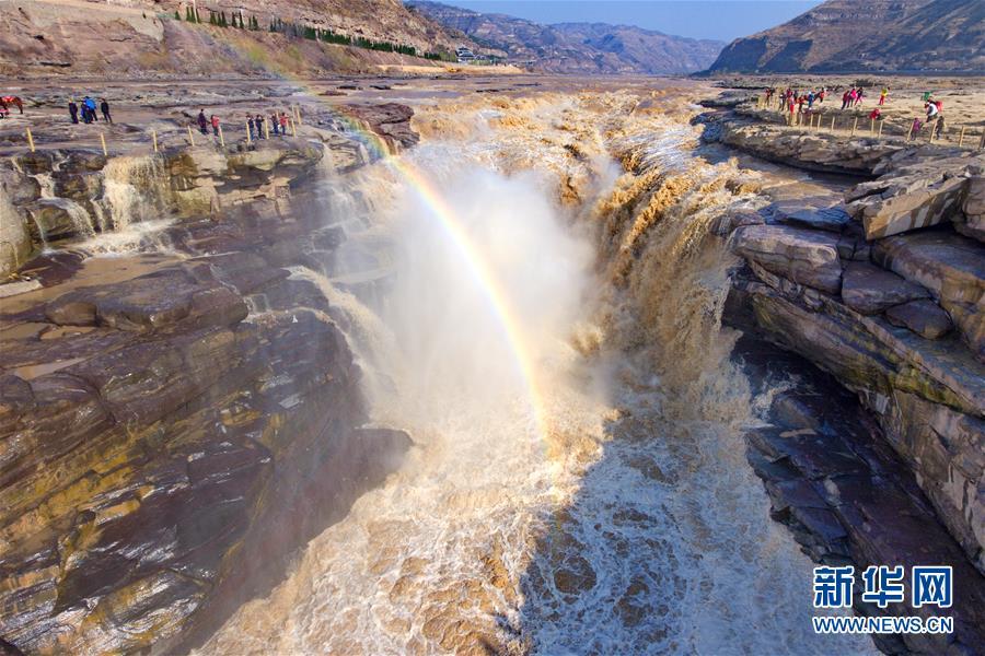 這是黃河壺口瀑布上出現(xiàn)的彩虹(3月22日無人機拍攝)。 在即將過去的2018年,各地攝影師用鏡頭記錄下四季中國。大江南北,一幅幅色彩斑斕的美麗畫卷徐徐展開。 新華社記者曹陽攝
