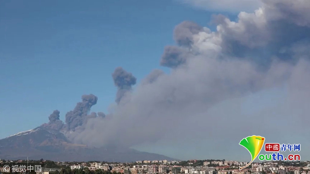 意大利埃特納火山持續(xù)噴發(fā) 黑煙滾滾 ...